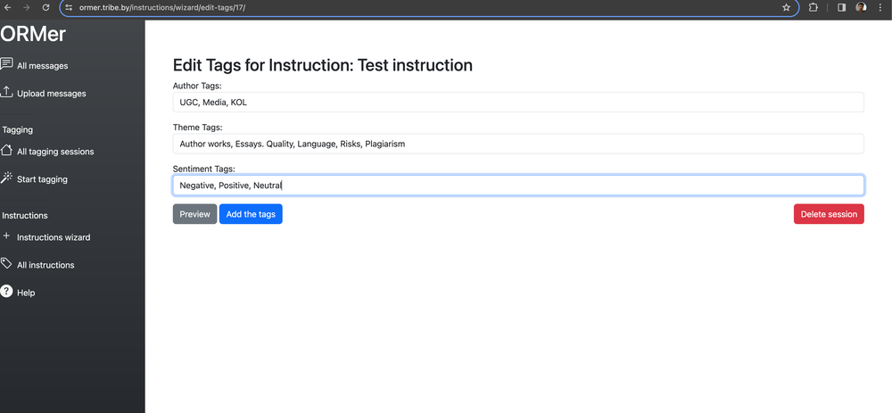 Инструкции являются ключевым элементом тегирования в ORMer. Они создаются итеративно, и редко получаются идеальными с первого раза. Чтобы создать инструкцию: