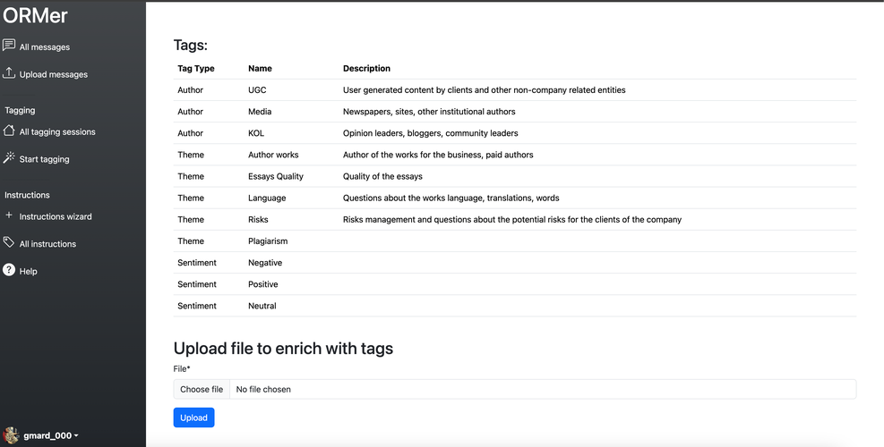 Добро пожаловать в ORMer, инструмент для помощи в онлайн исследованиях и мониторинге через тегирование сообщений по заданным инструкциям. Это руководство поможет вам ознакомиться с основными функциями ORMer и начать эффективную стратегию онлайн-мониторинга.